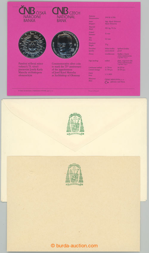 Numismatics. Czech Republic / 200CZK 2023 - Arcibiskup Olomouc J. K. Matocha, incl. cards, supplemented with about/by original kartu and envelope on/for letter with additionally printed by coat of arms arcibiskupa; very fine, as