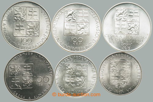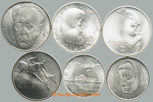 Numismatics. Czechoslovakia / comp. 6 pcs of memorial/special Ag minci: 100Kcs 1990 - 100. Anniv performance Velke Pardubice, 50Kcs 1990 - St. Anezka (with signaturou of author), 100Kcs 1990 - Bohuslav Martinu, 50Kcs 1991 -