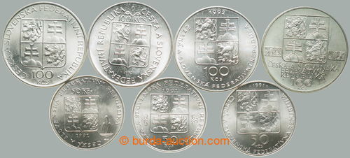 Numismatics. Czechoslovakia / comp. 7 pcs of memorial/special Ag minci: 50Kcs 1991 - Karlovy Vary, 50Kcs 1991 - Marianske Lazne , 50Kcs 1991 - Piestany, 100Kcs 1992 - 50. Lidice Memorial and Lezaku, 100Kcs 1992 - Moravian country