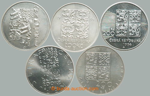 Numismatics. Czech Republic / comp. 5 pcs of Ag memorial/special minci: 200CZK 1993 - 1. Anniv authorization Constitution Czech Republic + 200CZK 1994 - 650. Anniv Prague arcibiskupstvi and Katedraly St. Vitus + 200CZK 1994 - 50.