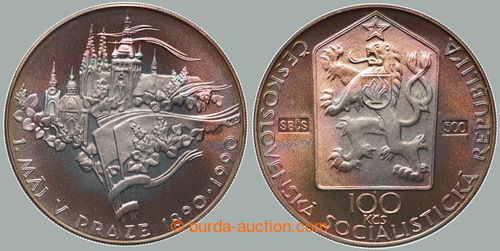 Numismatics. CZECHOSLOVAKIA 1945-92 / UNISSUED / 100 Koruna 1990 - May Day 1890, chystana memorial coin unissued from reason political zmen, on/for 2000 pcs of pripravenych coins in design of proof was/were additionally