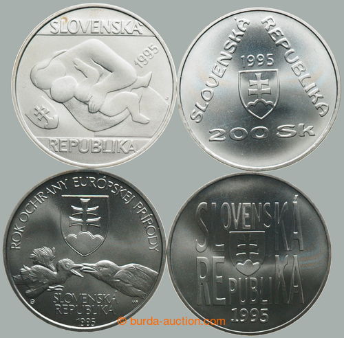 Numismatics. MC / comp. 4 pcs of Ag memorial/special minci: 200SKK 1995 - P.J. Safarik, 200SKK 1995 - M. Galanda, 200SKK 1995 - Year protection European nature, 200SKK 1995 - 100 years tram in Bratislava, placed in original