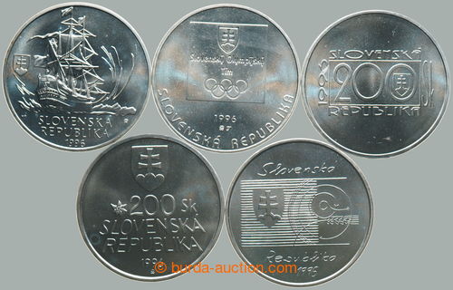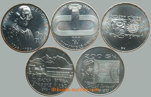 Numismatics. MC / comp. 5 pcs of Ag memorial/special minci: 200SKK 1996 - S. Jurkovic, 200SKK 1996 - J. Ciger, 200SKK 1996 - 100 years olympic games, 200SKK 1996 - Zubacka on/for track Strba-Strbske Pleso, 200SKK 1996 - M.