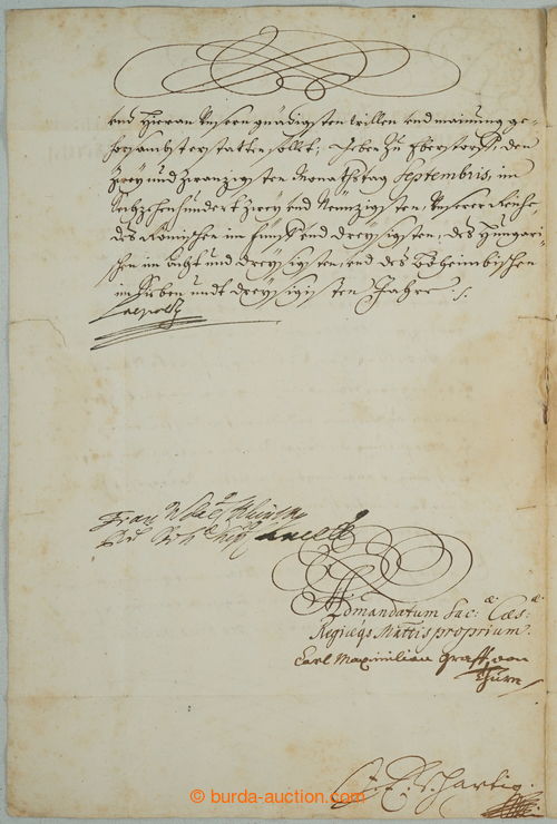 (1678-1741, vicekancler and then the highest kancler Czech kingdom; nice in good condition condition, ganging rare signatures! (Image) (Image2)