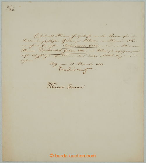 Coblenzi, caused by in Prague 13. November 1853, signatures Ferdinand and Mary Ann; perfect condition, ganging signatures imperial pair is rare! (Image)