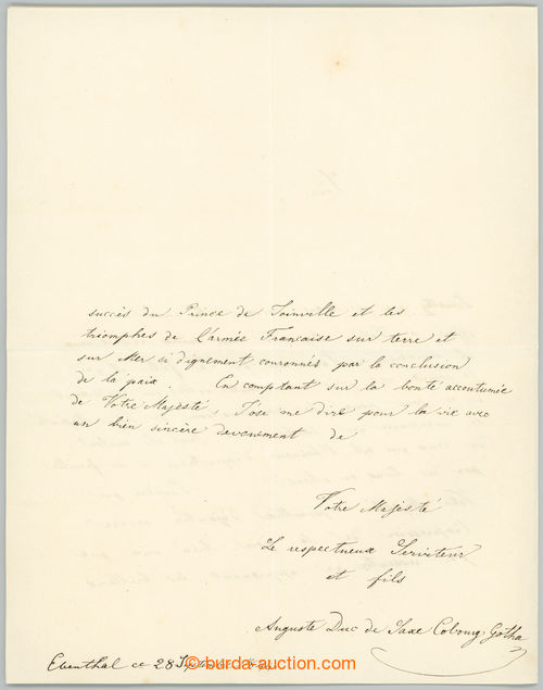 Autographs. AUGUST SASKO-KOBURSKO-GOTHAJSKY (1818-1881), prince from koharske branch koburske dynastie, mladsi brother portugalskeho King of Ferdinand II., synovec Belgian King Leopold I. and father bulharskeho tzar of Ferdinand