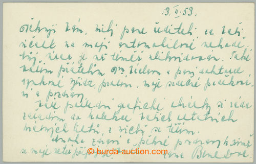 Autographs. BENESOVA Hana (1885-1974), wife of president Edvard Benes, handwritten 11-radkovy text with signature on the reverse side photo Prague Uvozu; very fine (Image) (Image2)