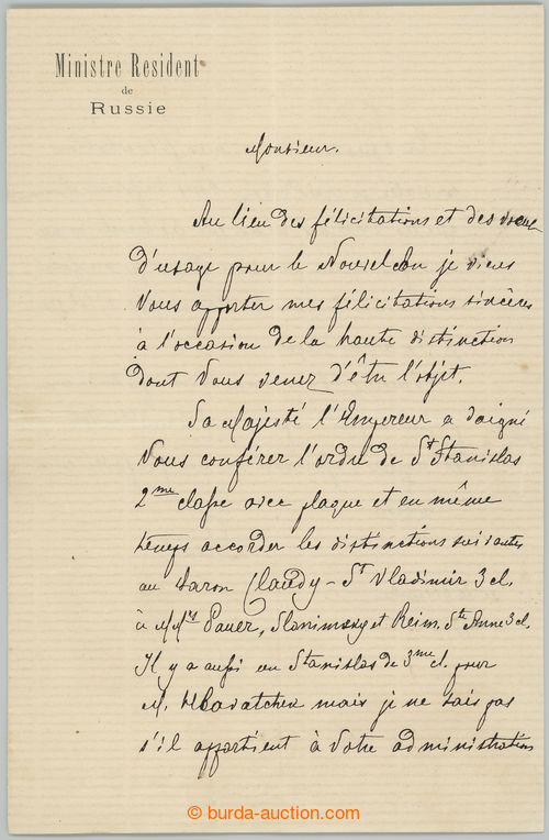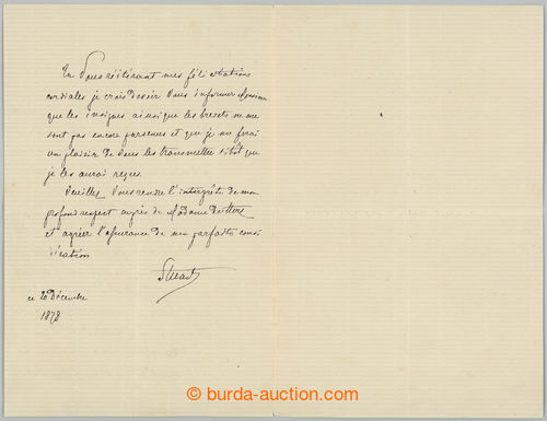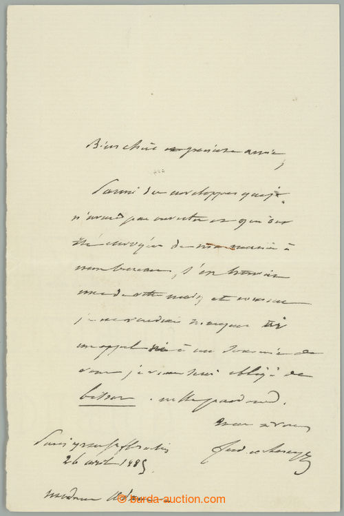 Autographs. de LESSEPS Ferdinand (1805-1894), French diplomat and businessman, proslavil with vybudovanim Suezskeho canal, his projekt Panamskeho canal skoncil neuspechem, handwritten 1-strankovy letter with signature; very fine,