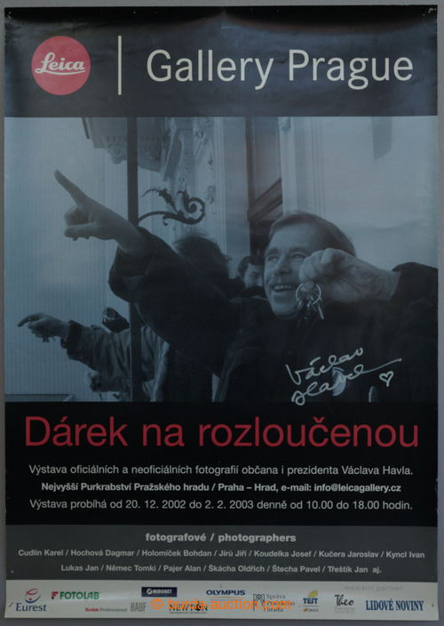 Autographs. HAVEL Wenceslas (1936-2011), Czechoslovak and Czech president, autograph on poster exhibition Darek on/for rozloucenou sorted to/at end Havlova mandatu on/for Prague castle, size 84x59cm; nice good condition, rare (Image)