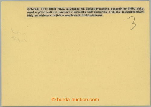 Autographs. PIKA Heliodor (1897-1949), Czechosl. soldier and legionnaire, important representative foreign Czechosl. protinacistickeho resistance and after/around unorovem prevratu obet komunistickeho rezimu, autograph on podpisove