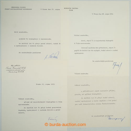 Autographs. SELECTION of / signatures normalizacnich politicians and ministru: Strougal, Lenart, Travnicek, Erban, Kapek, Obzina, Colotka, Kempny, Kopcak, Hanes; as multiple interesting (Image) (Image2)