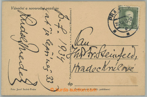 Autographs. MEDEK Rudolf (1890-1940), Czech writer, General and politician, handwritten written New Year's wish with signature on Ppc; good condition (Image) (Image2)