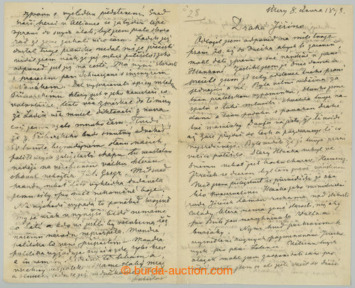 Autographs. PINKAS Sobeslav (1827-1901), Czech painter, karikaturista and verejny official, handwritten 4-page letter sent to dceru Jirinu, matku herce J. Voskovce; very nice good condition, important osobnost (Image) (Image2)