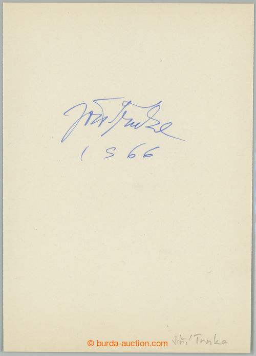 Autographs. TRNKA George (1912-1969), Czech artist, loutkar, illustrator, painter, sculptor, writer, scenarista, kostymni artist and film director animovanych filmu, autograph with dataci on card; very fine (Image) (Image2)