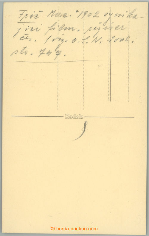 Autographs. FRIC Martin (1902-1968), one from nejslavnejsich Czech screen reziseru; signature below artistic pseudonymem Mac Fric with dataci on/for portrait photo postcard, atelier Strominger; very fine and sought (Image) (Image2)
