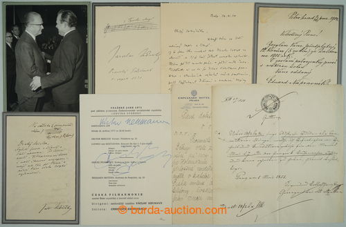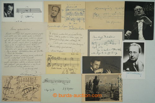 Autographs. [COLLECTIONS] MUSIC / selection of 21 signatures and rukopisu important Czech musical skladatelu and dirigentu, i.a. V. Novak, Kolesovsky, K. Vacek, J. Kocian, J. Kricka, A. Tichy, A. Moyzes, L. Slovak etc..; as
