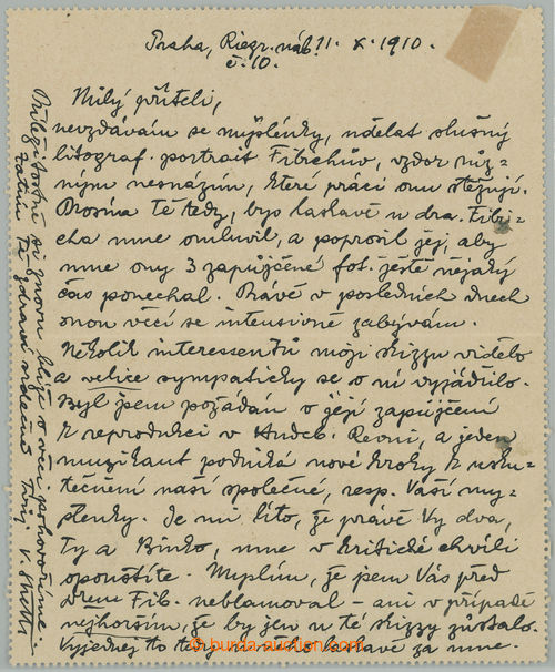 Autographs. PREISSIG Vojtech (1873-1944), important Czech graphic artist, typograf, painter, illustrator, participant protirakouskeho also protinacistickeho resistance, autograph on letter on heading paper sent from New York; on