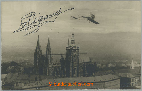 Autographs. PEGOUD Adolphe (1889-1915), slavny French pilot, pioneer aeronautics, the first air-mail ace history, autograph on front side photo postcard zachycujici Pegoud's years above katedralou St. Vitus in Prague; on reverse