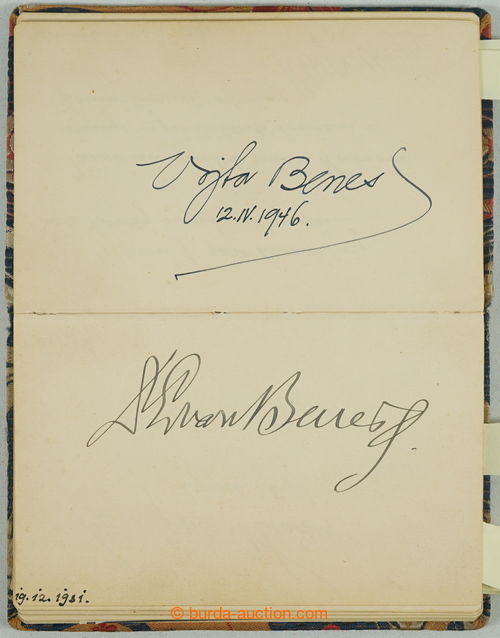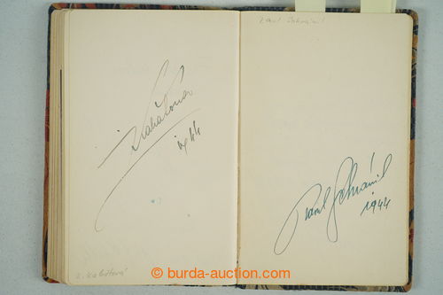 Autographs. [COLLECTIONS] VYZNAMNE PERSONALITIES / monument with ca. 80 signatures various Czechosl. personalities: i.a. B. Karen, E. Fiala, T. Pistek, J. Kricka, J. Kubelik, president Edward Benes, V. Benes, J. Laufer, O.