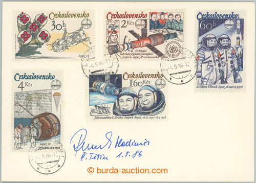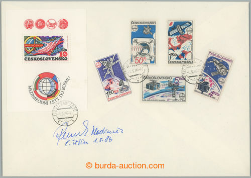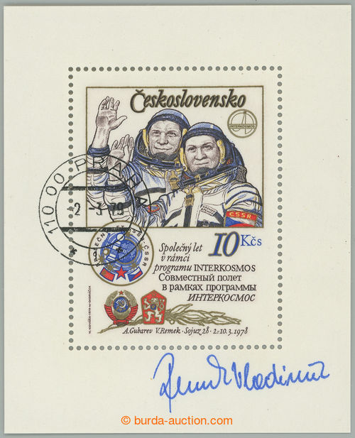 Autographs. REMEK Vladimir (*1948), single Czechoslovak astronaut, 3x podpis: on 2 envelopes with mounted tematickymi stamp. and on MS Pof.A2364A; very fine (Image) (Image2)