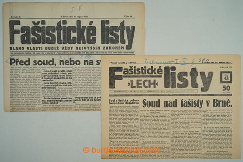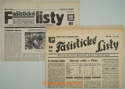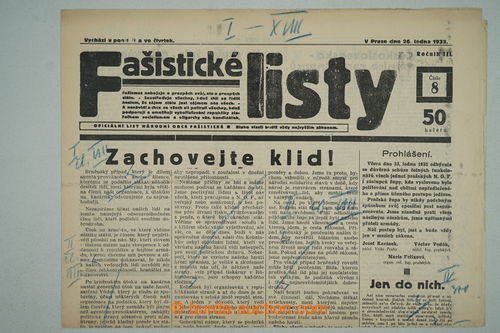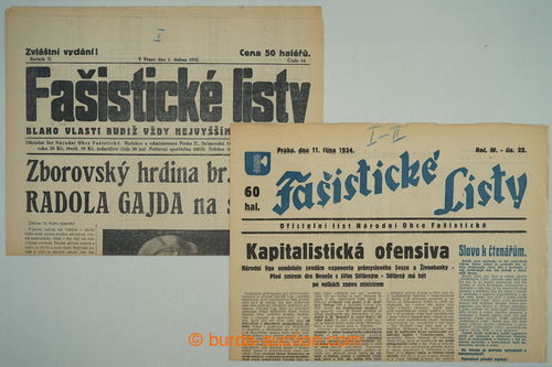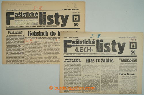 Historical Documents, Maps. [COLLECTIONS] CZECHOSLOVAKIA 1918-39 / FASISTICKE SHEETS / selection of 64 pcs of various numbers newspapers movement National Fascist League, probably censor repro-proofs, lot of skrtu and notices blue