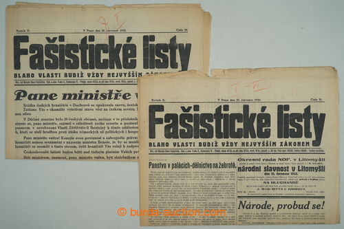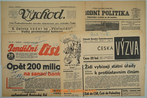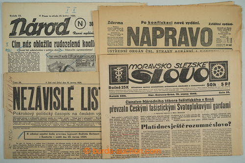 Historical Documents, Maps. [COLLECTIONS] CZECHOSLOVAKIA 1918-39 / BOHEMIA-MORAVIA / selection of 114 pcs of various pravicovych, vlasteneckych, nacionalistickych and fasistickych newspapers in Czechoslovakia and Protectorate,
