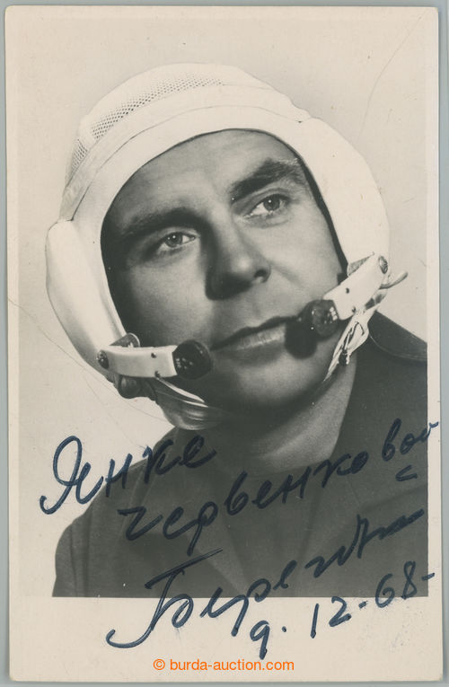 Autographs. BEREGOVOJ Georgij Timofejevic (1921-1995), Soviet astronaut ukrajinskeho origin, autograph with dedication and dataci on/for portrait photograph; nice good condition (Image) (Image2)