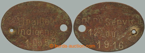3511 imageOther Collector`s Domains. WWI / FRANCE / military identification stamp., according to dohledane documentation (copy also with) belonged soldier from 11. regiment alzirskych tirailleuru (alzirsti strelci - pechotni unit folded from domorodeho population colonies); nalezova toned, otherwise nice good condition, very interesting (Image)