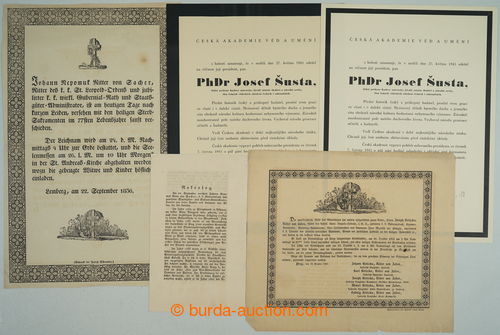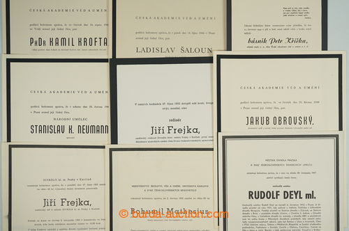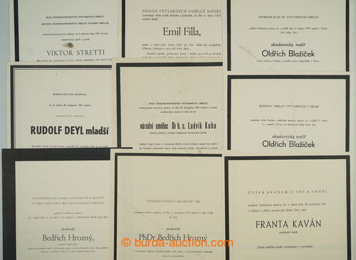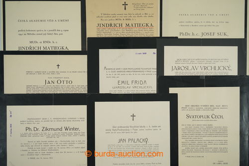 3514 imageOther Collector`s Domains. [COLLECTIONS] FUNERALIE/ PARTE - comp. of 13 mourning cards important Czech personalities, i.a. Viktor Stretti, Emil Filla, Frederic Hrozny, Stanislav K. Neumann, Zikmund Winter, Kamil Krofta, Joseph Susta etc..; in good condition condition, interesting multiple (Image) (Image2) (Image3) (Image4) (Image5)
