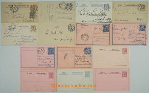 Philately. PRAGUE PNEUMATIC TUBE POST / selection of 11 Us PC of various issues, Ferch.PK16 2x, PK19 uprated with stamp 5h, PK19 2x, PK26, PK29 4x, PK31, supplemented with 4 Un PC and letter-card of pneumatic-tube post; good