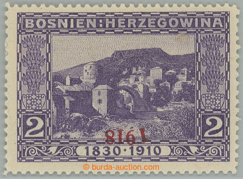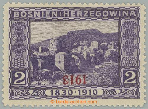 Philately. CHYBOTISK / Ferch.147I K, Landscape 2H violet, OVERPRINT ERROR - 1913 INSTEAD 1918 - INVERTED OVERPRINT; lightly hinged, c.v.. for * 750EUR, rare (Image) (Image2)