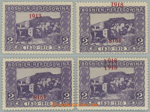 Philately. ERRORS / Ferch.147I, 147D+K, 147K, 147D, selection of 4 stamps Landscape 2H violet with printing errors overprints - 1913; double, 1x inverted; inverted; double; very fine, favourite printing errors (Image) (Image2)