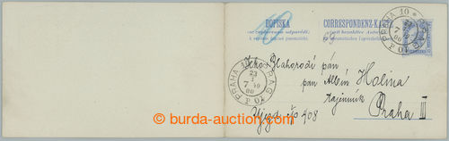 Philately. PRAGUE PNEUMATIC TUBE POST / Ferch.PK17 Doppelkarte, whole one-way Us double PC for pneumatic-tube post Franz Joseph I. 10Kr + 10Kr ultramarine, CDS PRAGUE 10/ 23/1 00; fine, c.v.. 150EUR (Image) (Image2)