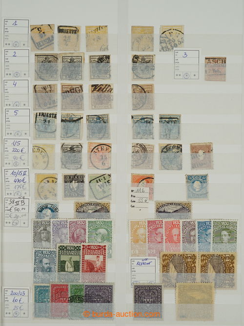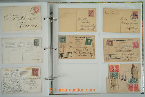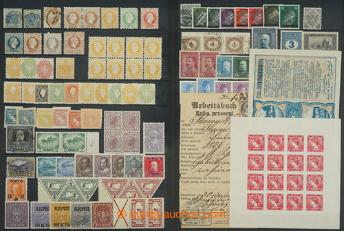 Philately. [COLLECTIONS] small collection of mainly used stamps on pages in spring folder, i.a. cancel. 10K 1908, * Flugpost, * Postage due stamps 1894 and 1900, then also Bosnia, FP, Levant etc.., supplemented with entires of FP;