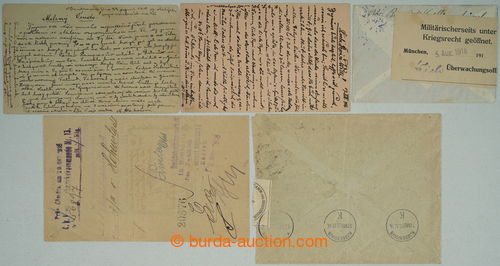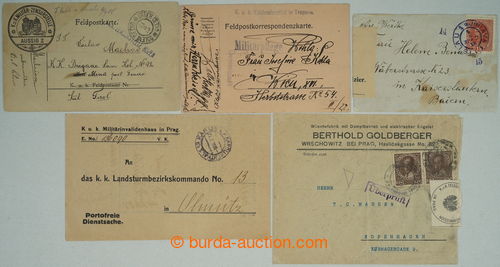 Philately. CENSORSHIP / 5 entires with censorship, i.a. 1x stick-on label K.u.K.. MILITAR - ZENSURSTELLE AUSSIG 2, 1x card with cancel. EPIDEMIESPITAL IN TROPPAU etc..; good condition (Image) (Image2)
