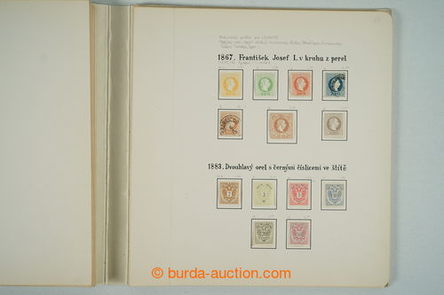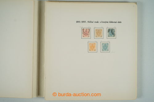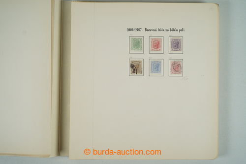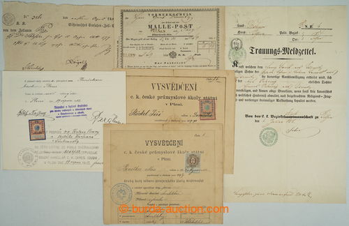 Philately. [COLLECTIONS] range of stamps on two cards A4, incl. reprints, more interesting for example 10K Franz Joseph I. 1908, supplemented with labour book with revenue 1877 and ticket of Raffle lottery from Velehrad (Image) (Image2)
