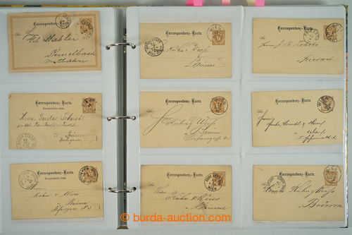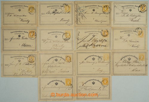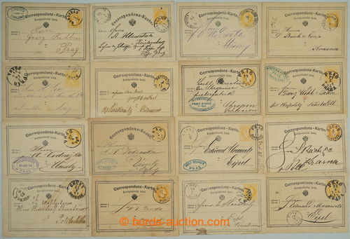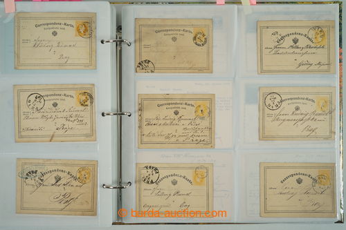 Philately. [COLLECTIONS] CZECH LANDS / POSTMARKS ON PC YELLOW / selection of 31 PC Franz Joseph I. 2 Kreuzer yellow, all circular or thimple pmks i.a. KARLSBAD, GABLONZ, HOLESCHOWITZ - BUBNAFRIEDLAND bei NISSE, PODERSAM, PROSSNITZ,