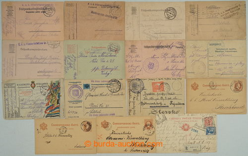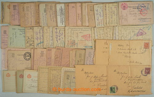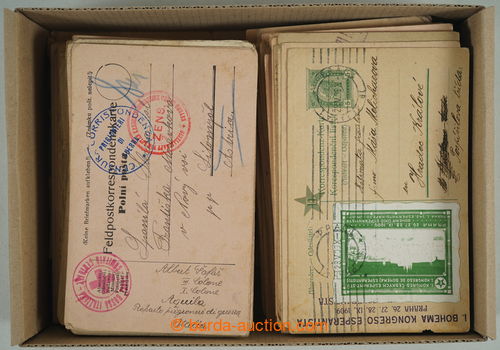 Philately. [COLLECTIONS] P.STAT. CARDS / selection of several hundreds PC from first issues yellow to 1918, incl. postwar issues, mainly from commercial correspondence, supplemented with FP cards and war prisoners cards from period