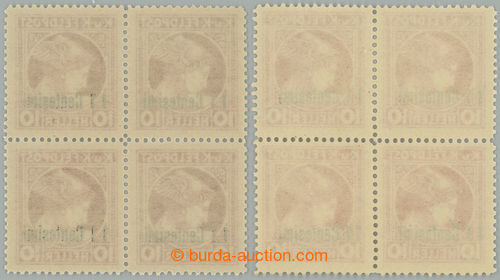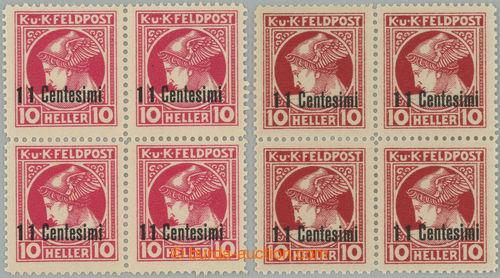 Philately. ITALY / newspaper Sass.3, 3a, ANK.22a, 22b, Mercure 11Cts block of four dunkel zinnoberrot and block of four lebhaft lilac - very rare color, Sassone c.v. 2.500EUR (Image) (Image2)