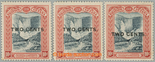 Philately. SG.223a+b+d, Waterfall 10c, 3 stamps with plate varieties: without stop after CENTS + TWO GENTS + lower broken-out E; fine, c.v.. £129
