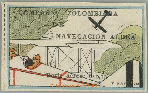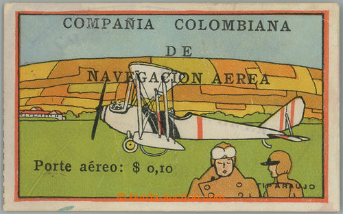 Philately. COMPANIA COLOMBIANA DE NAVEGACION AEREA / Mi.6, Airmail 10c; in margin small tearing and fold, light oval pmk, G-F, c.v.. 4.500EUR
