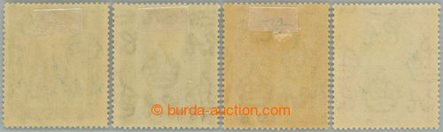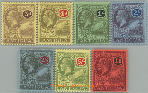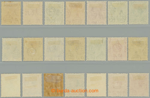 Philately. SG.62-80, George V. - Coat of arms ½P - 4Sh, wmk Mult Script CA, complete set of 21 stamps, incl. shades SG.64a, 65 and 71, in addition shades of values 1P and 3P, 7x marginal piece with plate number 1; fine, cat. min.