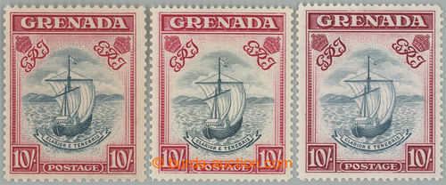 Philately. SG.163, 163a, 163f, Coat of arms 10Sh, selection of 3 types of perforation and shades; hinged, c.v.. £323 (Image) (Image2)