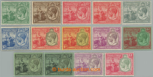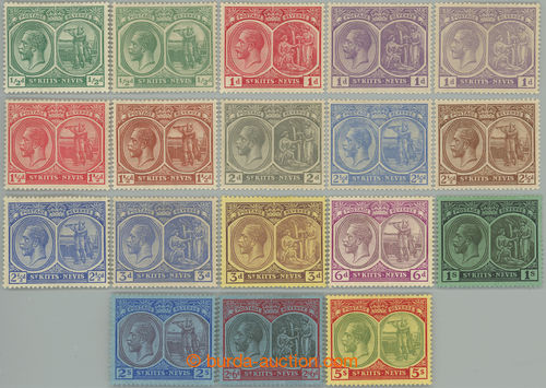 Philately. SG.37-47c, George V. - Columbus ½P-5Sh; complete set¨of 18 stamps incl. SG.37a and 39a, several minor faults, c.v.. ca. £180