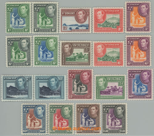 Philately. SG.246-256, George VI. - Motives 1c - $4,80; complete set incl. both shades of value 12c, cheap 2c minor faults, c.v.. £165