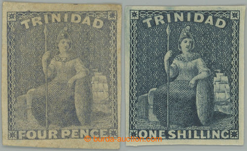 Philately. SG.25, 29, Seated Britannia (Perkins - Bacon) 4P and 1Sh; very fine, c.v.. £240 (Image) (Image2)