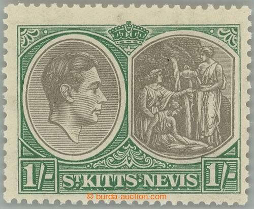 Philately. SG.75a, George VI. - Coat of arms 1Sh black / green with plate variety - BREAK IN VALUE TABLET FRAME; lightly hinged, fine, c.v.. £300
