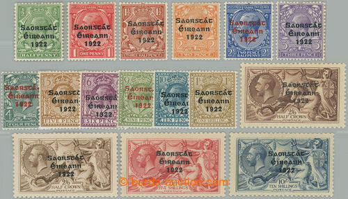 Philately. SG.67-70, 71-82, Brit. George V. ½P-2P with overprint SAORSTAT EIREANN 1922 + Coat of arms and motives ½P-1Sh; 2 complete sets, c.v.. £100 (Image) (Image2)