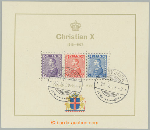 Philately. Mi.Bl.1, miniature sheet Christian X. with CDS REYKJAVIK 20.V.37; with original gum, mint never hinged, c.v.. 250EUR (Image) (Image2)