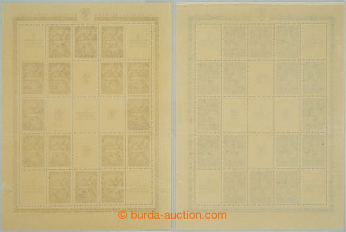 cut, complete imperforated set in marginal pcs. and PLATE PROOF PB Mi.164 on yellow paper without gum; fine quality, mainly mint never hinged, interesting collection